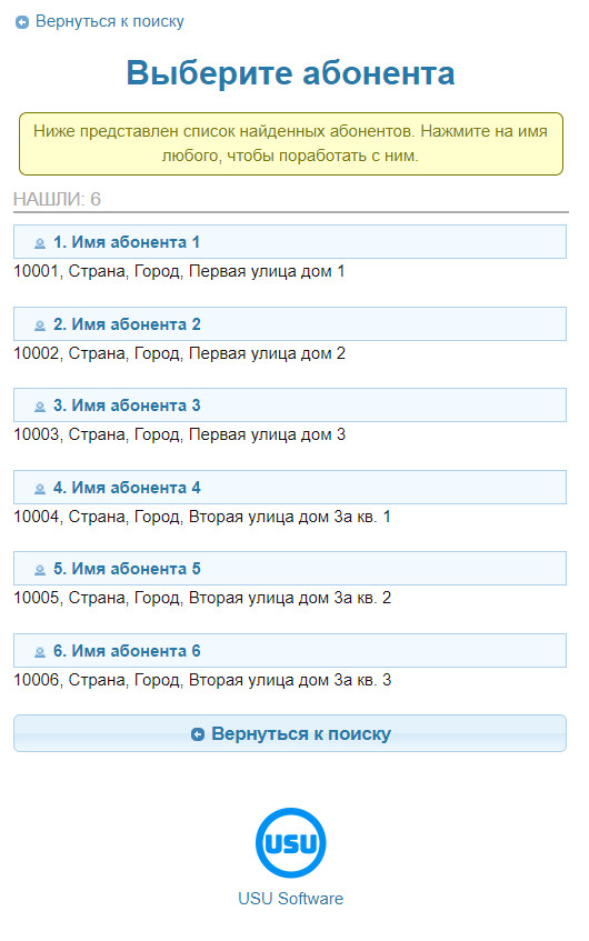 Благодаря мобильному приложению УСУ процесс станет значительно проще, в частности тогда, когда контролёр способен сразу принимать оплату от клиента. Представим, что ему требуется оформить показания либо произвести платёж за услуги. Нужно лишь запустить мобильное приложение для абонентского отдела, указать название населённого пункта или улицу — и система выдаст список абонентов, должников и прочие данные. Всё это регулируется настройками.